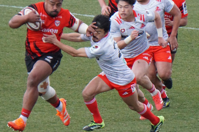 キヤノンは後半に3連続トライを挙げるなど追い上げを見せましたが一歩届かず。ディビジョン1で唯一勝利なしが続いています。